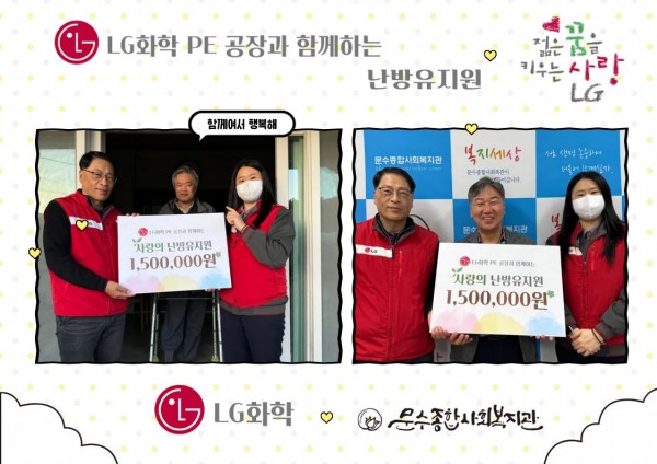 [문수종합사회복지관] 추운겨울, 지역주민들에게 따뜻한 온기를 전하다. 페이지 정보 작성자 보문복지회 작성일25-11-24 11:57 조회26회 댓글0건 본문 LG화학 PE공장의 후원으로 지역내 에너지 취약계층을 위해 난방유를 지원하였습니다.이번 지원은 동절기 난방비 부담 증가로 어려움을 겪는 가구들이 따뜻한 겨울을 보낼 수 있도록 마련되었습니다. 댓글목록 등록된 댓글이 없습니다. 이전글 다음글 목록