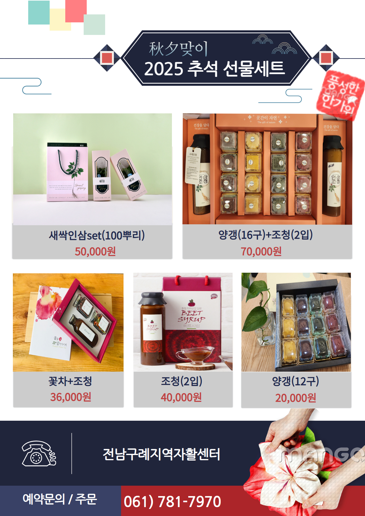 2025 추석 기념 선물세트_전남구례지역자활센터 페이지 정보 작성자 보문복지회 작성일25-09-18 15:42 조회57회 댓글0건 본문 많은 관심 바랍니다. 댓글목록 등록된 댓글이 없습니다. 이전글 다음글 목록