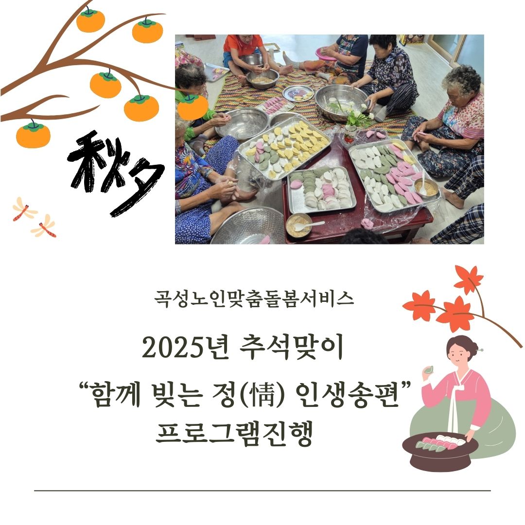 [곡성노인맞춤돌봄] 추석맞이 함께 빚는 정(情) 인생송편 프로그램