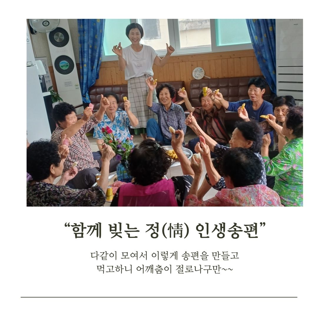 정성으로 빚어 올린 ‘인생송편’은 이날 참여한 어르신들의 가정에 전달되어 풍성한 한가위의 의미를 더하고, 이웃과 함께 나누는 따뜻한 정을 통해 지역사회에 훈훈한 감동을 선사하는 계기가 되길 바래봅니다.