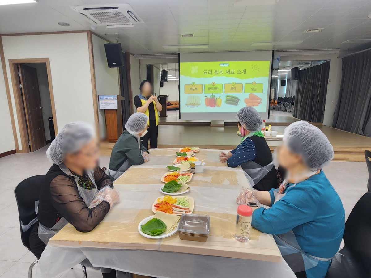 활동에서는 식재료의 효능과 조리 방법을 공유하여 어르신들이 보다 쉽게 조리에 참여할 수 있도록 하였으며, 직접 재료를 보고 만지고 조리하는 과정을 통해 오감을 자극하는 즐거운 시간이 되었습니다.