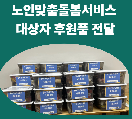 이번 문수종합사회복지관에서는 전국기초푸드뱅크 에서 지원하는 식표품 40여종을 노인맞춤돌봄서비스 8월 신규대상자와 남면 대상자 총 41명에게 지원 하였다.