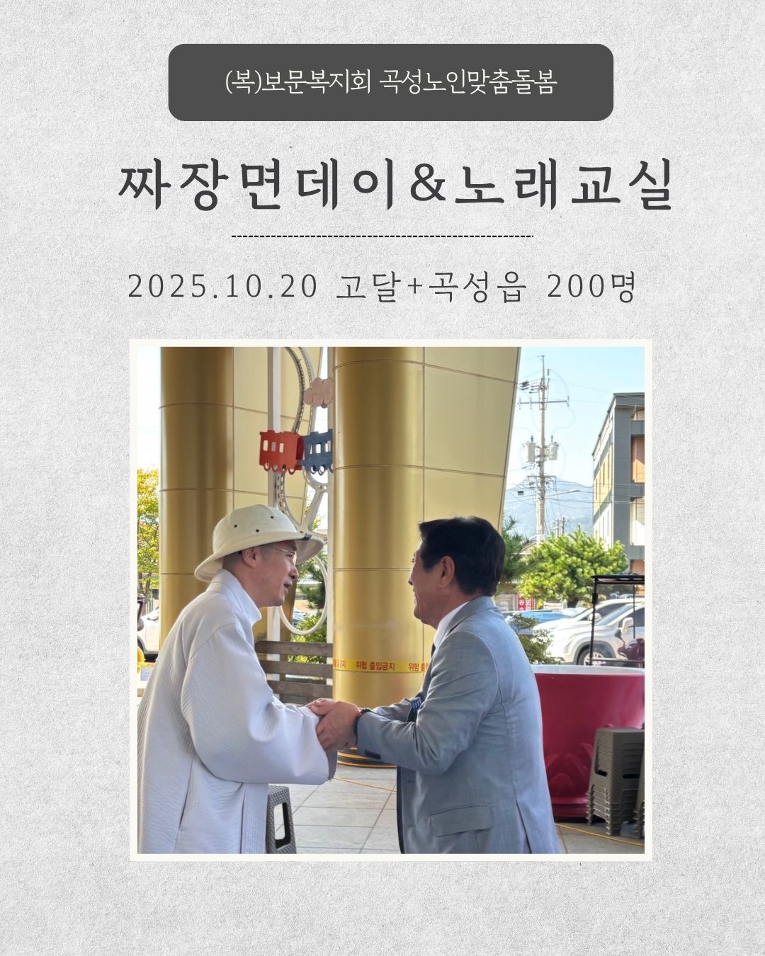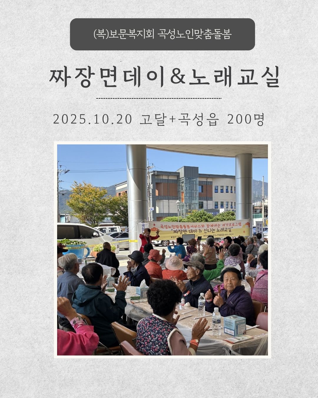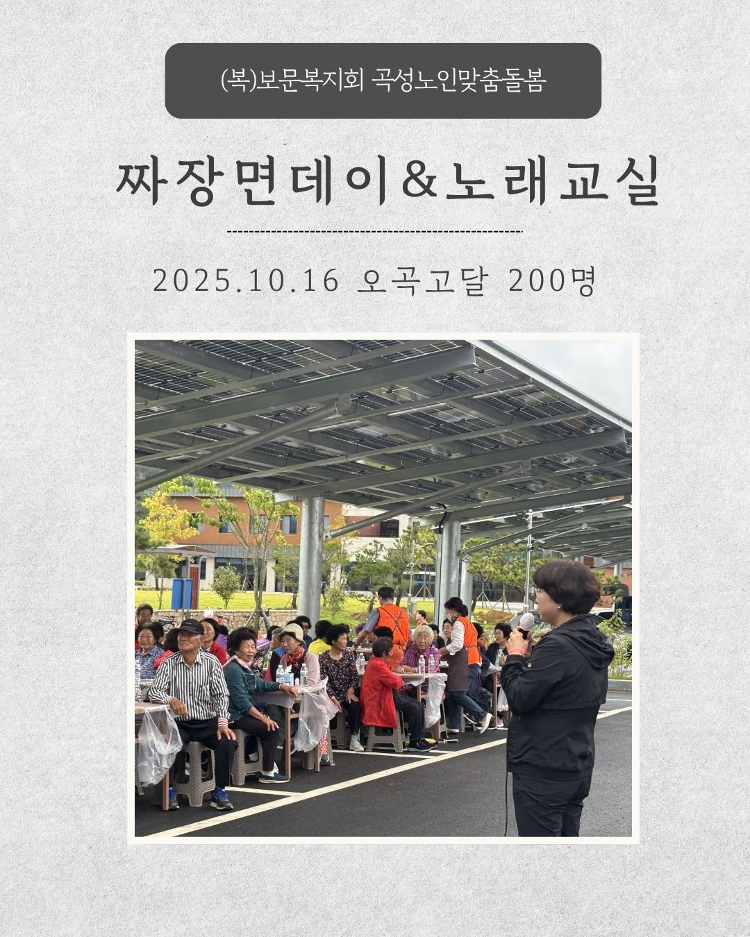 곡성노인맞춤돌봄 '짜장면데이&노래교실' 릴레이 행사, 1,500명 어르신 웃음꽃 피우며 대성황