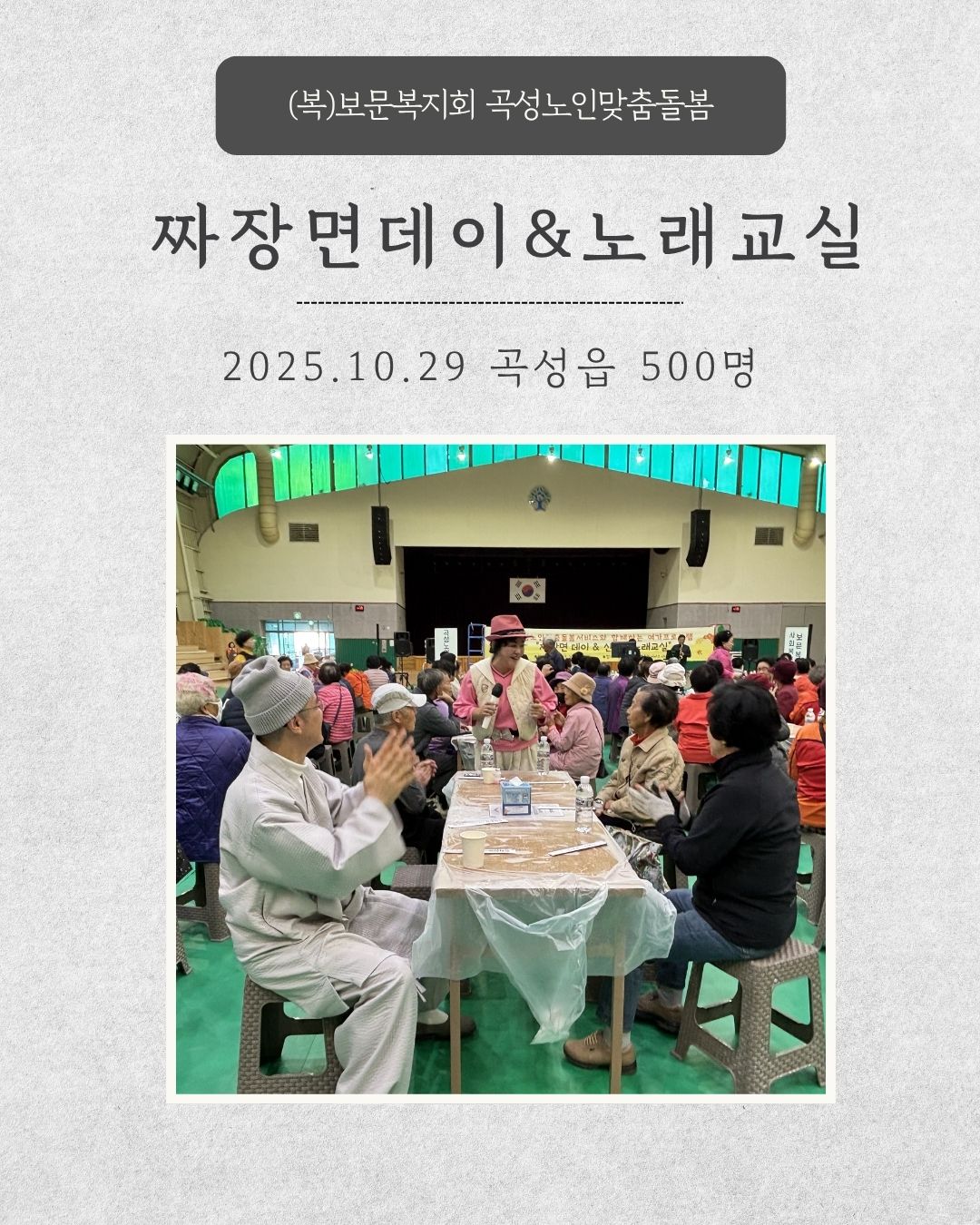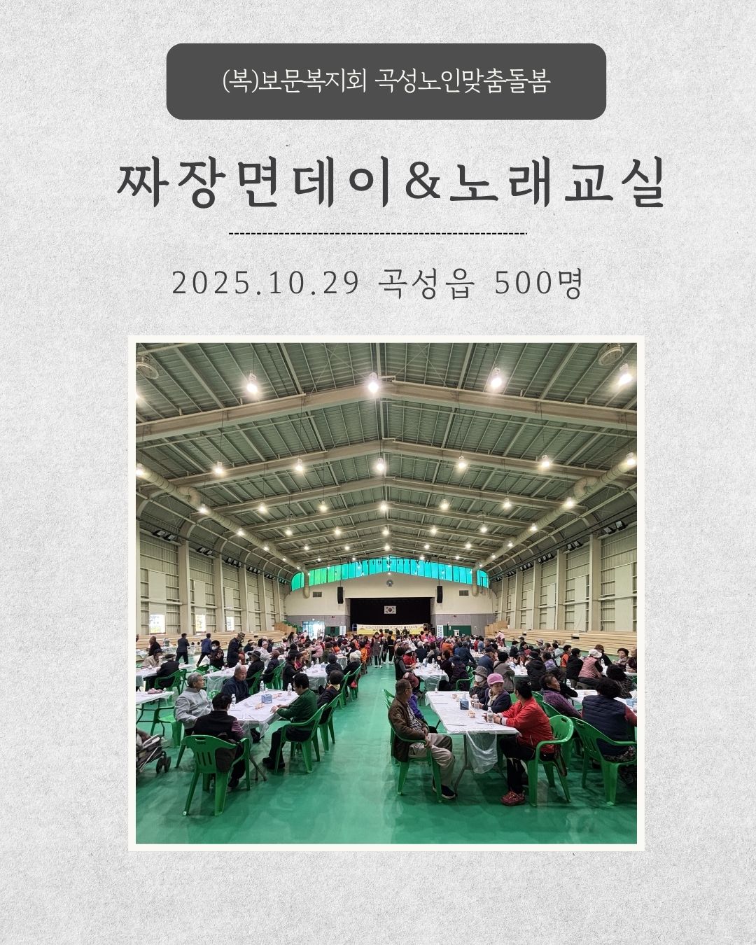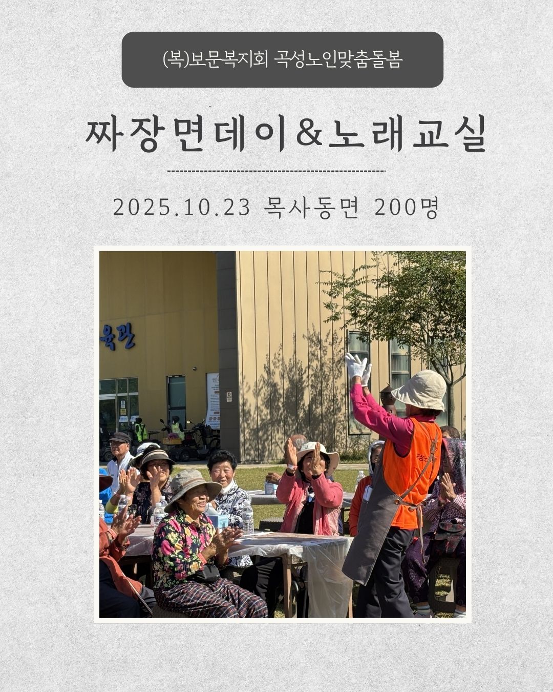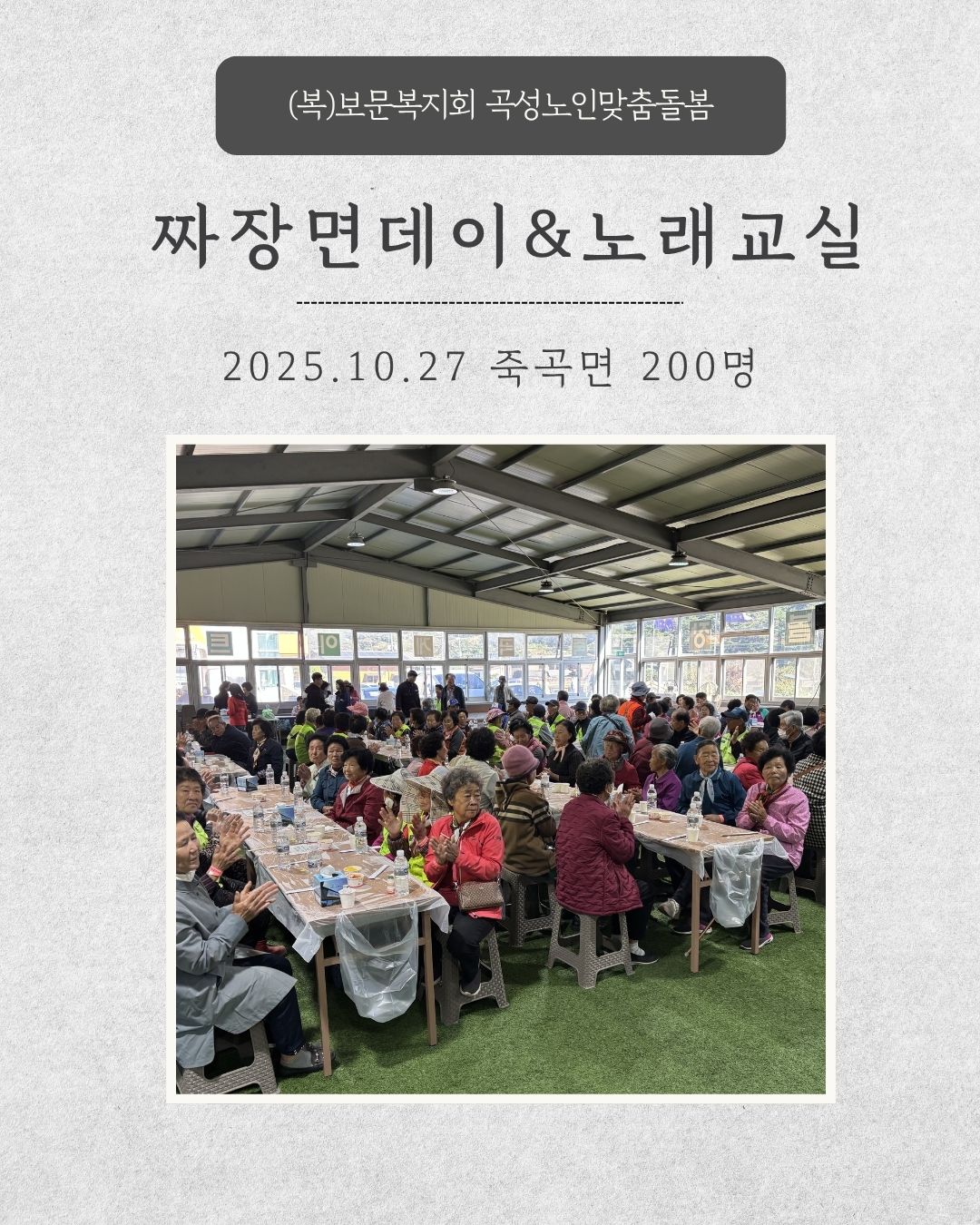 곡성노인맞춤돌봄 '짜장면데이&노래교실' 릴레이 행사, 1,500명 어르신 웃음꽃 피우며 대성황