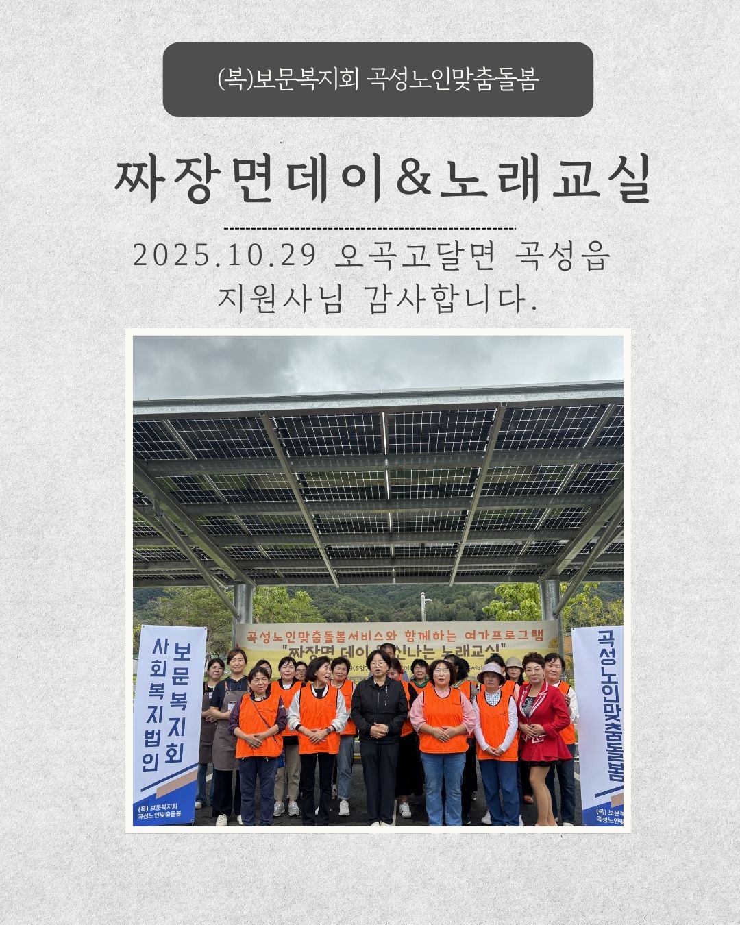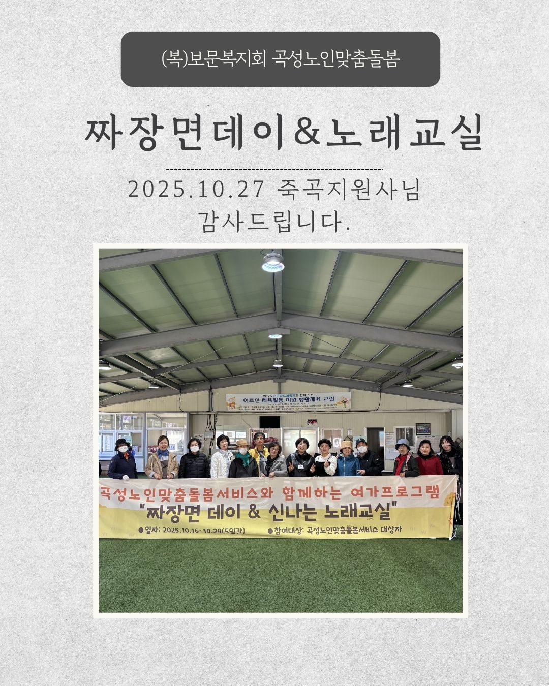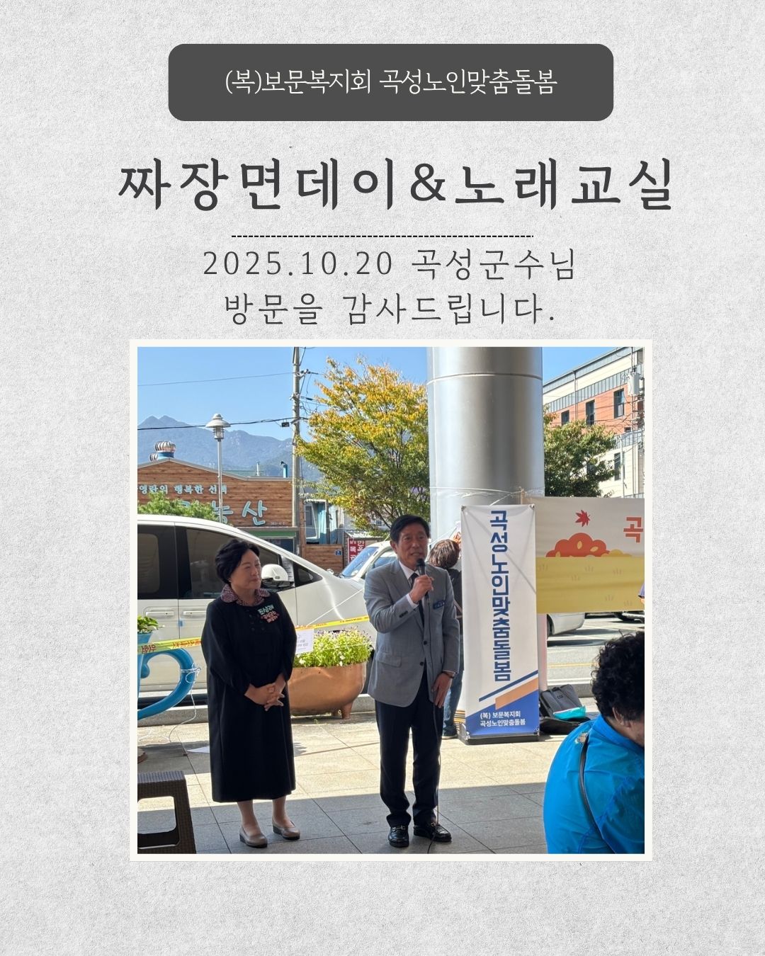 [곡성노인맞춤돌봄] 여가프로그램 "짜장면데이&노래교실"