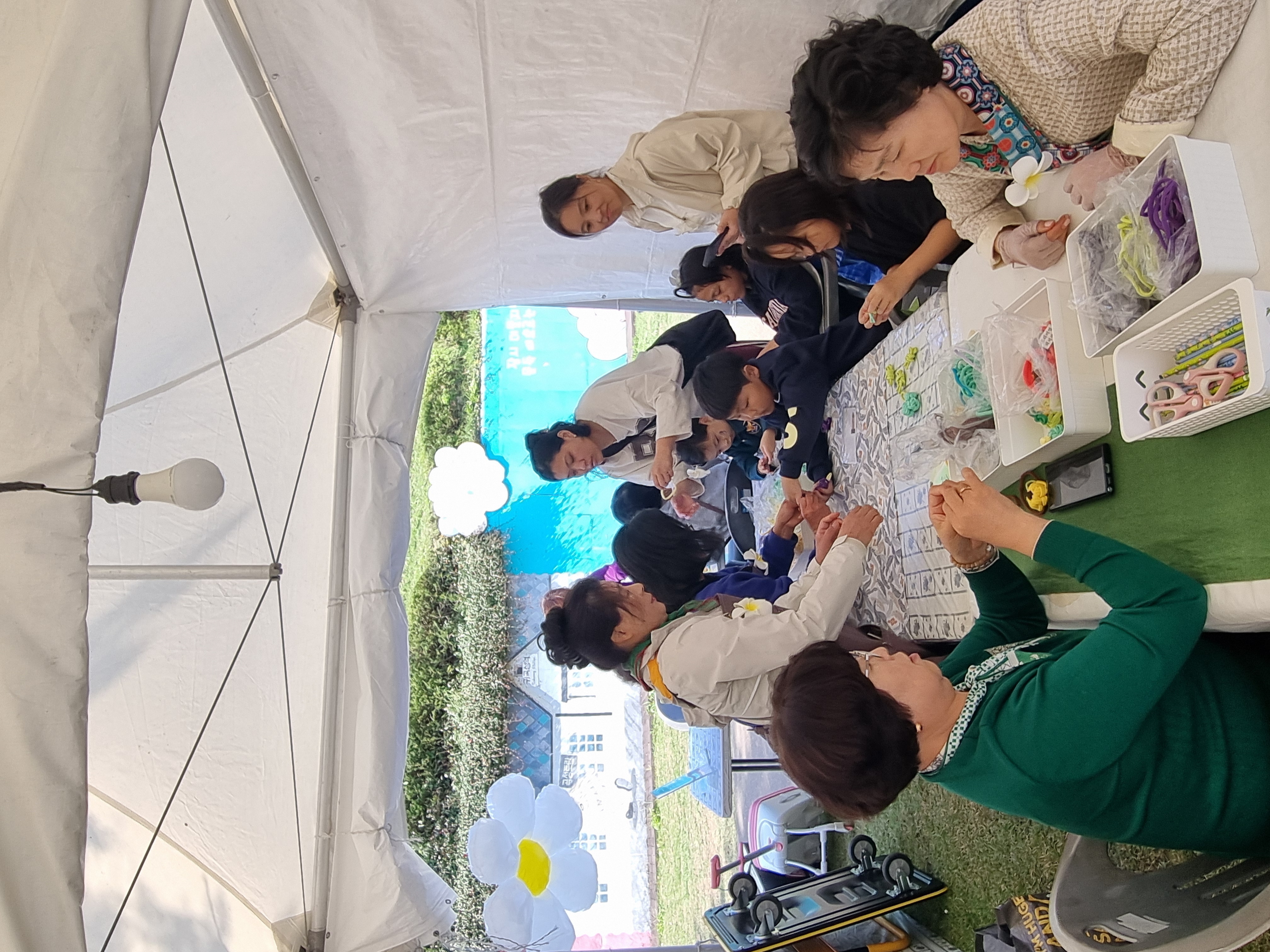-양말목 키링 만들기: 버려지는 양말목을 활용하여 친환경 키링을 만드는 체험은, 어르신들의 생활 지혜와 손재주를 엿볼 수 있는 기회였다. 아이들은 어르신들의 도움을 받아 키링을 만들며 자연스럽게 세대 간의 협력과 교류를 경험했다.