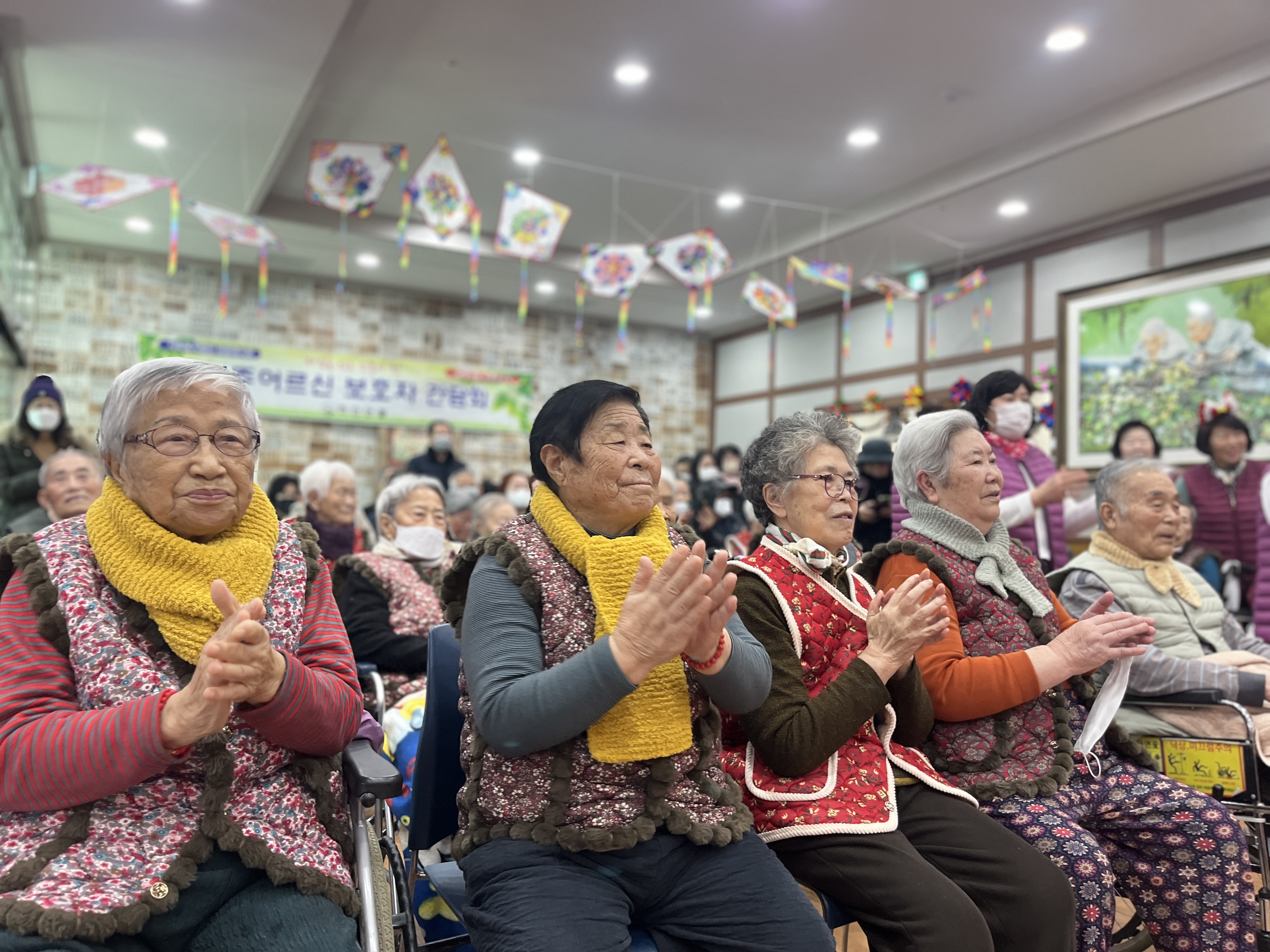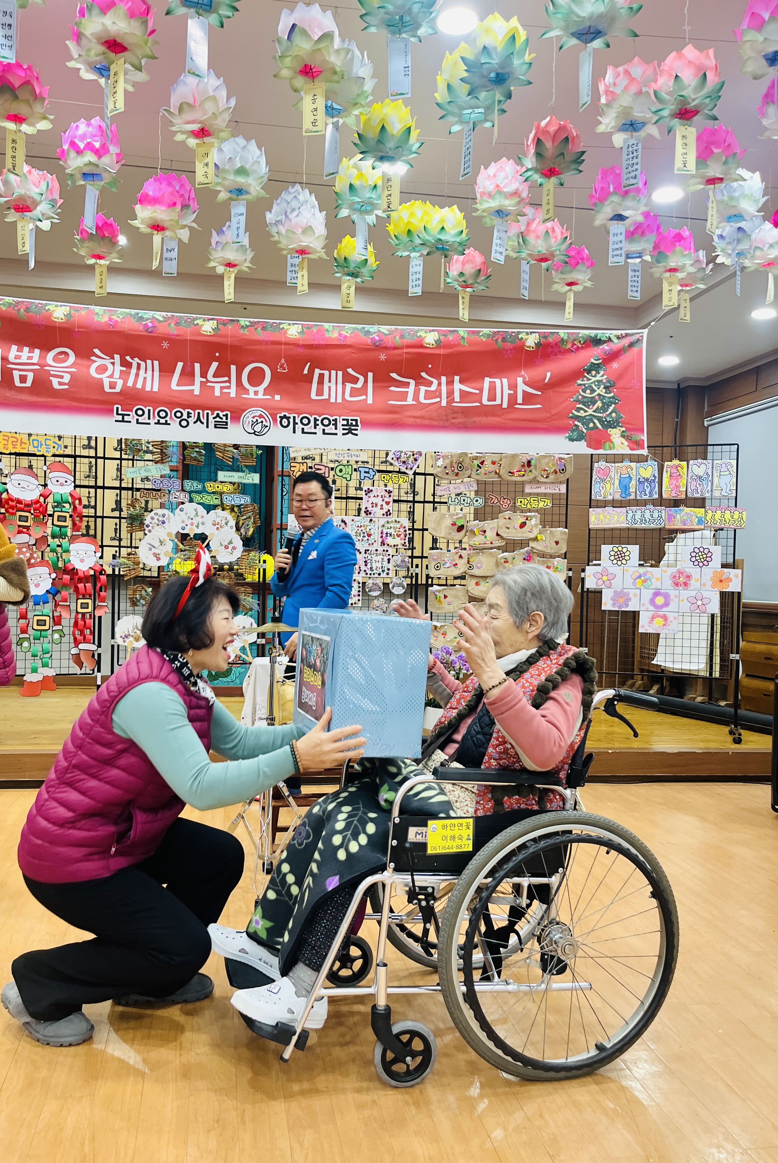 한 해를 마무리하는 연말을 맞아, 어르신들의 정서적 고립감을 해소하고 따뜻한 위로를 전하기 위해 "행복한 크리스마스 잔치"를 개최하였습니다. 행사 몇일 전부터 어르신들과 함께 직접 트리를 꾸미고 생활실 곳곳에 장식을 설치하며 성탄의 설렘을 공유하였습니다. 행사 당일 정겨운 캐럴 음악을 배경으로 보호자분들과 함께 화기애애한 분위기 속에 행사가 진행되었습니다.