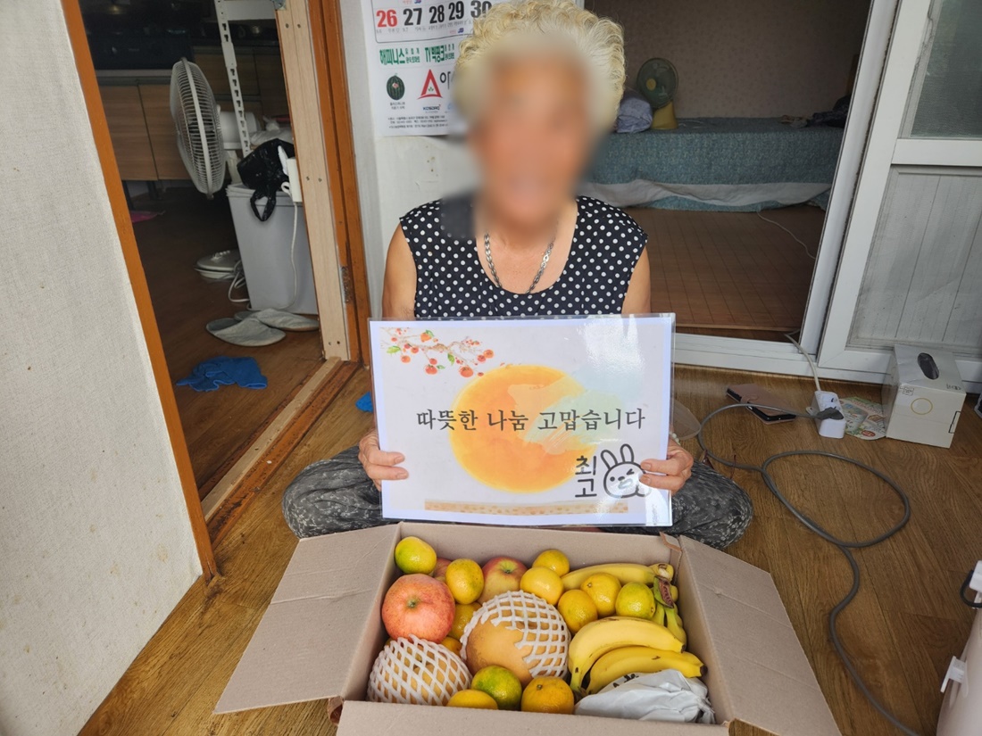 동여수노인복지관분관에서는 해피빈 온라인 모금을 통해 지역 어르신 10분께 과일세트(사과, 배, 바나나, 귤, 포도 등)를 직접 가정 방문하여 전달했습니다. 어르신들께서는 신선한 과일을 받으시고 환한 미소와 함께 감사함을 표현하셨으며, 건강과 따뜻한 마음을 함께 느끼셨습니다.