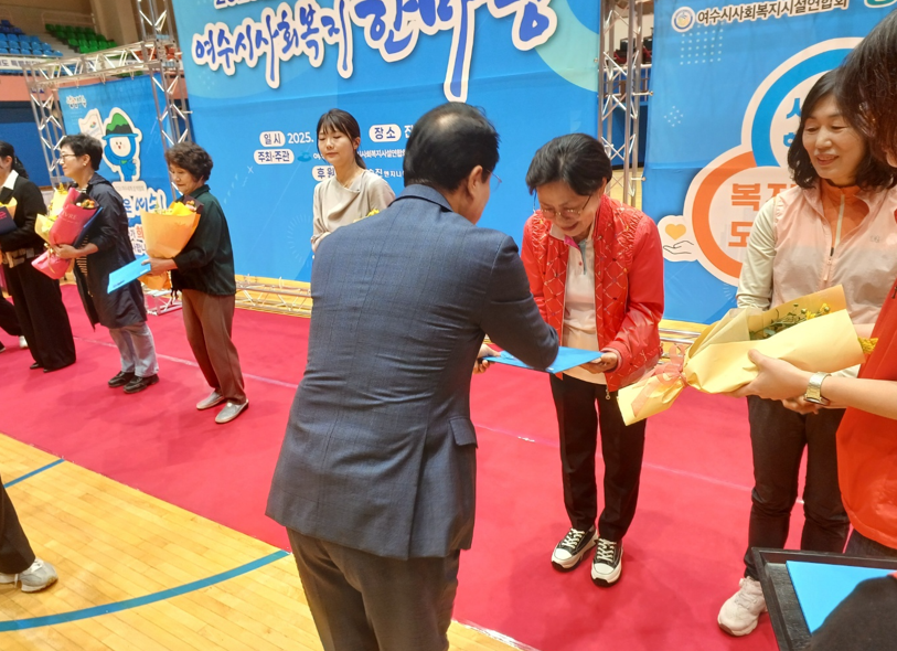 이번 행사에서 하정희 요양보호사께서 여수시장 표창장을 수여받으셨으며, 이어진 체육대회에도 함께 참여하였습니다.