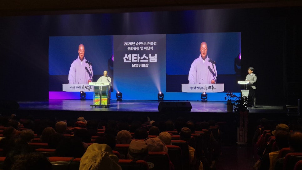 순천문화예술회관에 2025년 순천시니어클럽 문화활동 및 해단식이 성황리에 개최되었습니다.